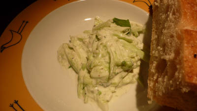 1. Peel and finely chop or shred the cucumbers. Sprinkle with pinch of salt and (time permitting) leave in strainer to drain for 10 – 20 minutes.