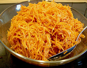 Kommentar : Die beiden Salate waren scharf. Für Kinder zu scharf. Aber die Erwachsenen haben die scharfen Salate sehr gerne gegessen und waren über die Würze positiv überrascht.