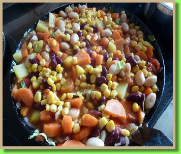 Kommentar: Die Kidneybohnen könnte ich bestimmt jede Woche einmal kochen, da meine Kinder absolut von Bohnen begeistert sind. Eigentlich hätte das Hähnchen in dem Gemüse gekocht werden sollen, aber ich wollte grillen, daher kam das extra.